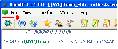 - Faceti click pe glob dupa cum arata in imaginea de mai jos si vi se va deschide lista de huburi adaugata de dumneavoastra mai devreme sau cele default pe care le avea programul încă de la instalare. Se poate intra pe huburi foarte simplu, facand click pe cel care doriti. Iar daca cunoasteti dumneavoastra o aderesa de hub o puteti adauga tinand apasat pe tastatura „Ctrl+Q“ (tastele „Ctrl“ si „Q“ in acelasi timp).