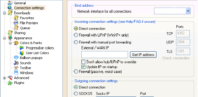 - 2 Al doilea pas în configurare este setarea conexiunii . Selectaţi „ Connection Settings “ acolo cel mai indicat este sa bifati „ Direct Connection “, iar daca folositi un firewall bifati „ firewall connection (passive, worst case) “ , însă dacă aţi selectat cel din urmă punct atunci căutările dumneavoastră pe apex dc vor fi limitate, şi anume, sursele găsite vor fi doar cele asemănătoare cu ale dumneavoastră. (mai exact: veti putea căuta doar la utilizatorii pasivi). Dacă aveţi router este necesar să il configuraţi corect ca să fiţi utilizatori activi şi în acest fel să puteţi downloda de la toţi utilizatorii.
