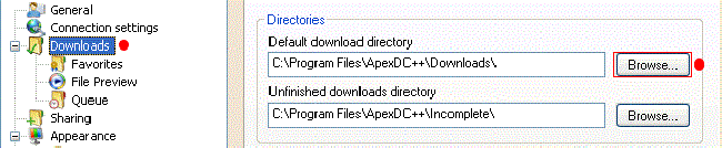 - acolo veţi observa în partea dreaptă „ Default download directory “ care este setat să salveze fişierele în directorul de baza al programului (implicit) dar noi nu dorim să se întample acest lucru deoarece directorul se află în partiţia cu sistemul de operare şi adesea aceasta este mai mica decât restul partiţiilor, iar fişierele descărcate de către noi ar putea să umple partiţia până la refuz. În concluzie va trebui să selectam o alta partiţie. Putem face aceasta apăsând butonul alăturat „ Browse “ care deschide o nouă fereastră pentru selectarea noii partiţii şi preferabil a noului director de „ downloads “ . „Unfinished downloads directory“ este directorul unde sunt salvate fişierele temporare sau neterminate. Acest director este necesar pentru a relua un download care a rămas neterminat din diferite motive . Poate fi lasat nemodificat.