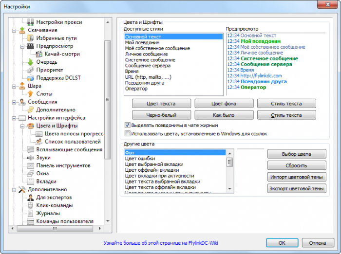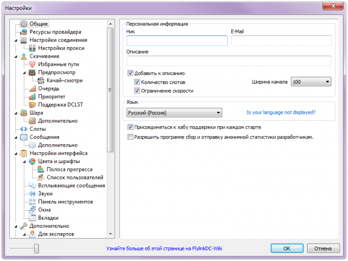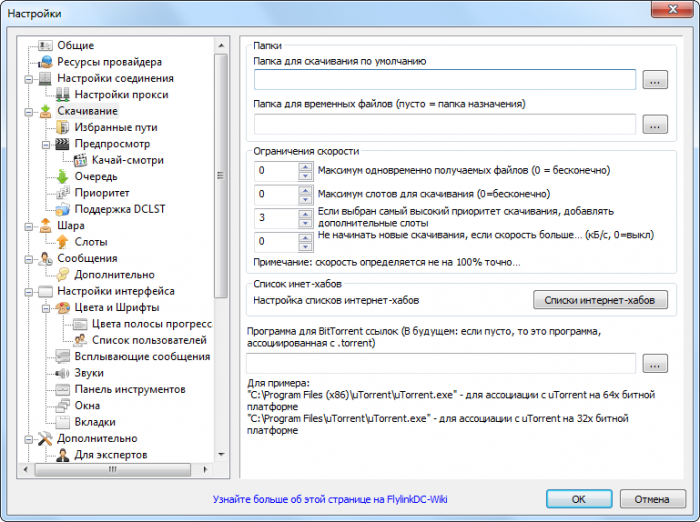 Настройки FlylinkDC++