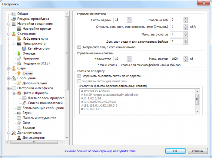 - Слоты отдачи - количество подключений к вам. На некоторых хабах также стоит ограничение на количество слотов, так что рекомендуется ставить 10